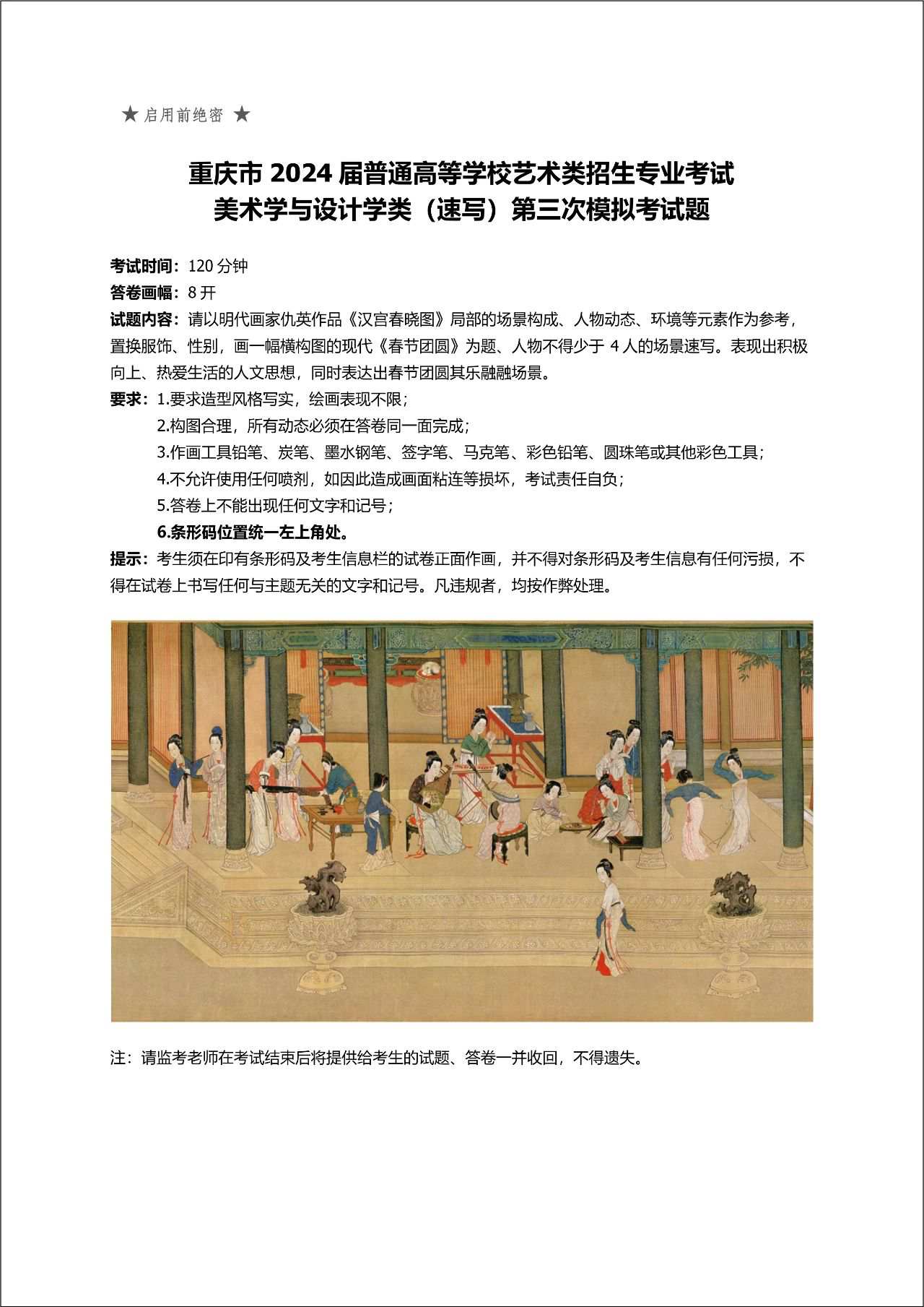 今年是藝考改革元年,特別是速寫。改革后考題的方向問(wèn)題,怎么考,怎么畫,怎么拿分,成為了考生最關(guān)心的三個(gè)問(wèn)題、所以??季褪呛芎玫捏w驗(yàn)方式,先給自己打一個(gè)預(yù)防針,以免真的看到聯(lián)考題的時(shí)候被嚇到。今天河南畫室劉老師帶大家看看,2024屆重慶省三模優(yōu)秀試卷是怎么樣的,同學(xué)們可以一起觀摩一下!